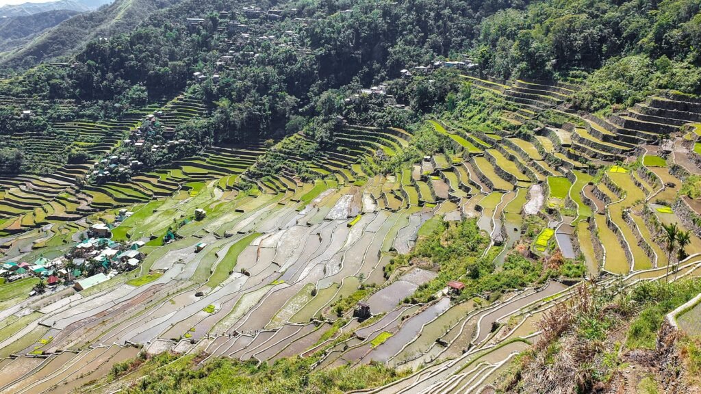 Often called the “Eighth Wonder of the World,” the Banaue Rice Terraces are a UNESCO World Heritage site and one of the Philippines’ most iconic landscapes. The terraces cascade down the mountains like giant steps, creating a green, layered wonder that stretches as far as the eye can see.